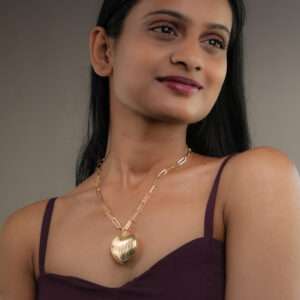 Vosgi Ribbed Heart Pendant Chain Necklace in Gold