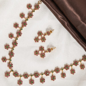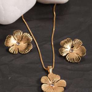 Vosgi Floral Drop Necklace Set in Gold Finish