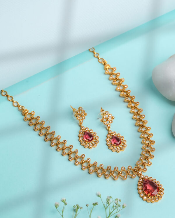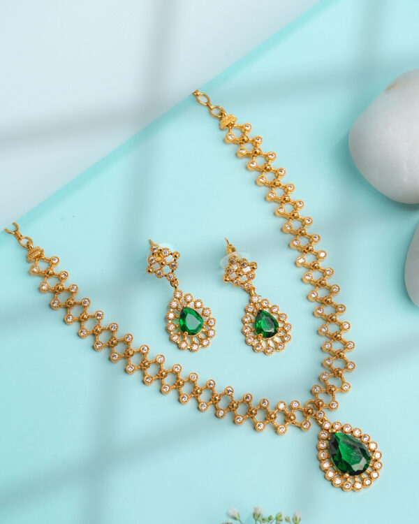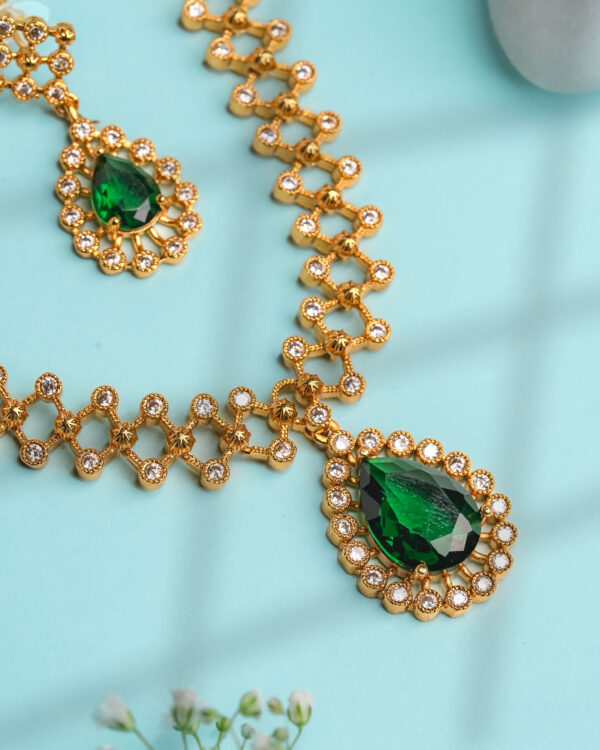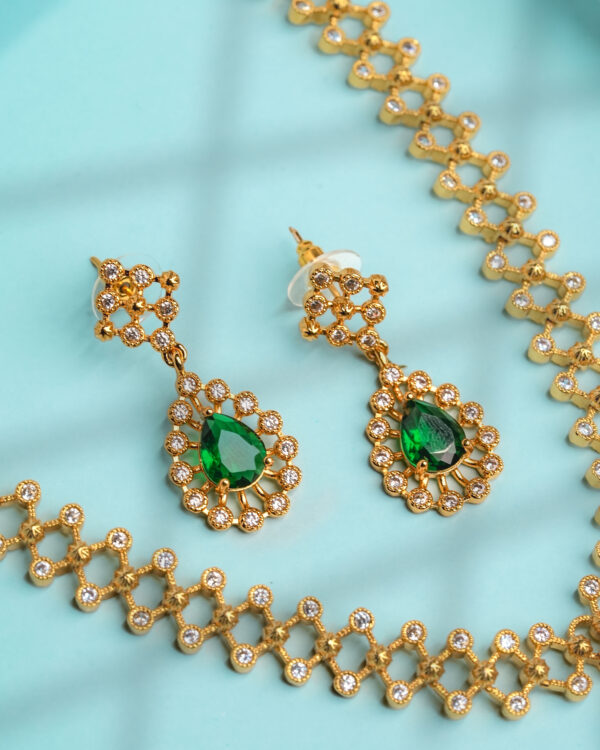 Lightweight yet luxurious in appearance, the set offers comfortable wear for long celebrations and features an adjustable clasp for a secure, tailored fit. Ideal for weddings, evening receptions, festive gatherings, and bridal occasions, this Vosgi creation delivers timeless glamour with bold gemstone color—perfect for those who prefer statement jewelry with a classic, royal finish.
