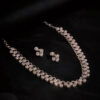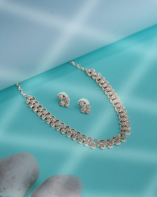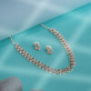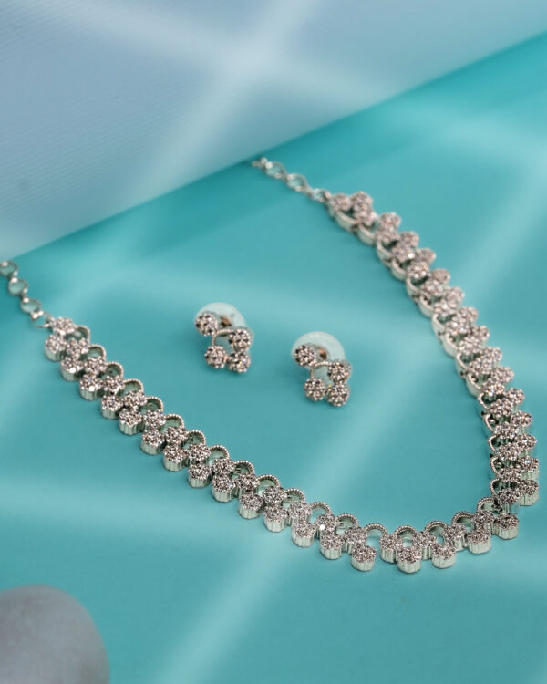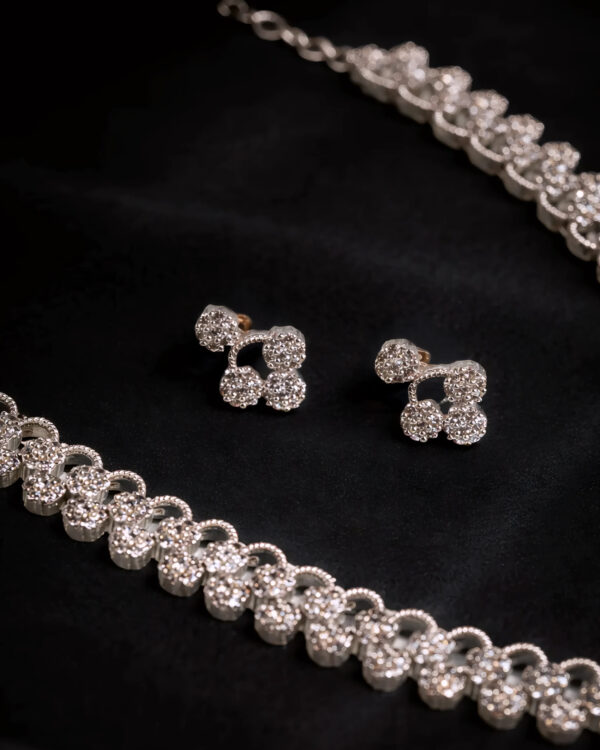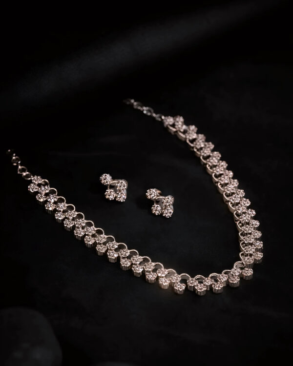 The matching stud earrings mirror the necklace’s blooming pattern, offering balanced symmetry and understated glamour for a coordinated ensemble. Lightweight construction ensures comfortable wear for long events, while the adjustable clasp allows a customized fit.
