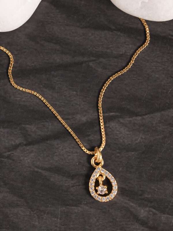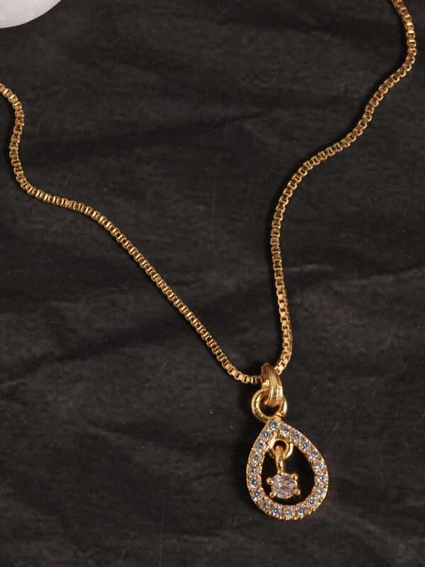 Paired with a sleek gold-tone box chain, this design balances modern minimalism with timeless charm. Lightweight and comfortable, it is ideal for daily wear, office styling, festive outings, brunch looks, or evening occasions. The clean silhouette makes it easy to layer with other chains or wear solo as a subtle statement piece.