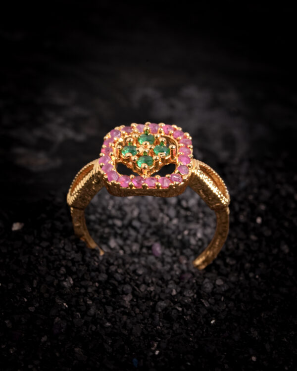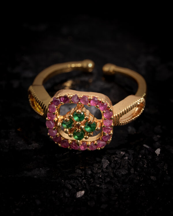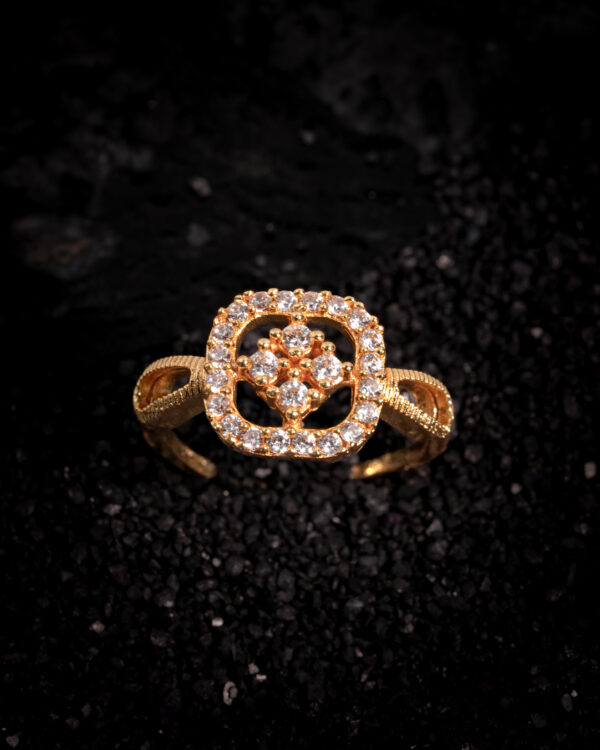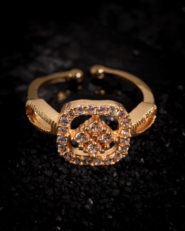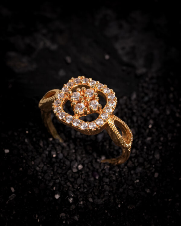 Be the first to review “Vosgi Diamond Halo Floral Gold-Tone Adjustable Ring”