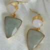 Elevate your everyday and occasion wear with these Vosgi dual stone geometric drop earrings, designed for women who appreciate understated luxury with a modern edge. Featuring a soft blush-toned round stone at the stud top and a faceted sage-green triangular drop below, this pair creates a striking contrast of shapes and hues.