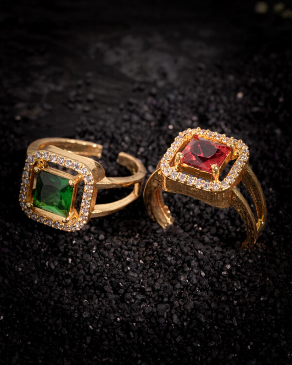 Be the first to review “Vosgi Emerald-Cut Halo Gold-Tone Adjustable Ring”