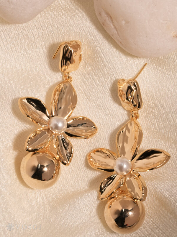 A signature Vosgi creation, these pearl bloom studs celebrate contemporary floral forms and timeless detailing—designed for women who appreciate statement jewelry with graceful presence and enduring appeal.