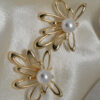 The openwork petal design adds lightness and dimension, creating a striking balance between modern artistry and soft femininity. The smooth, reflective finish enhances the fluid curves, while the rounded pearl centerpiece lends classic charm and sophistication.