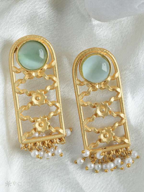 Pair them effortlessly with pastel silk sarees, embroidered lehengas, organza dupattas, or contemporary ethnic sets for a refined yet striking finish. Designed in Vosgi’s signature artisanal style, these earrings balance soft femininity with rich traditional detailing for women who appreciate timeless Indian aesthetics with a modern touch.